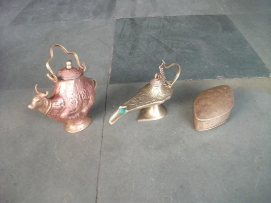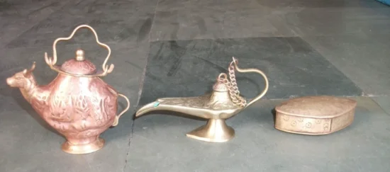 Set of 3 Vintage Brass & Copper Handcrafted Ritual Objects – 60 to 70 Years Old