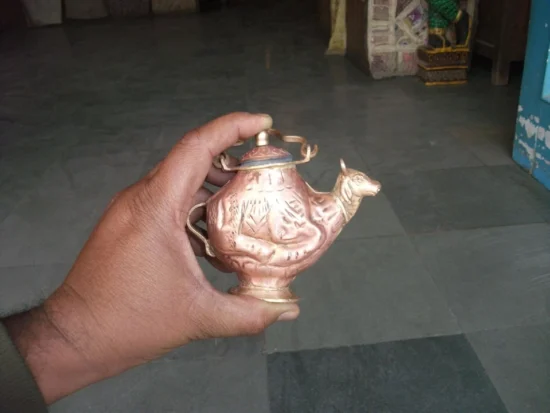 1 engraved cow / ox / Nandi shaped brass & copper pot