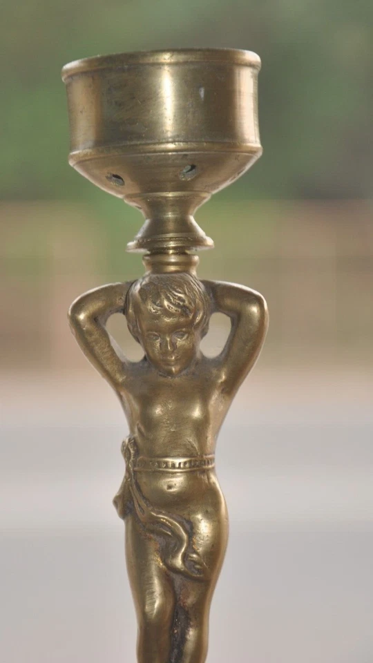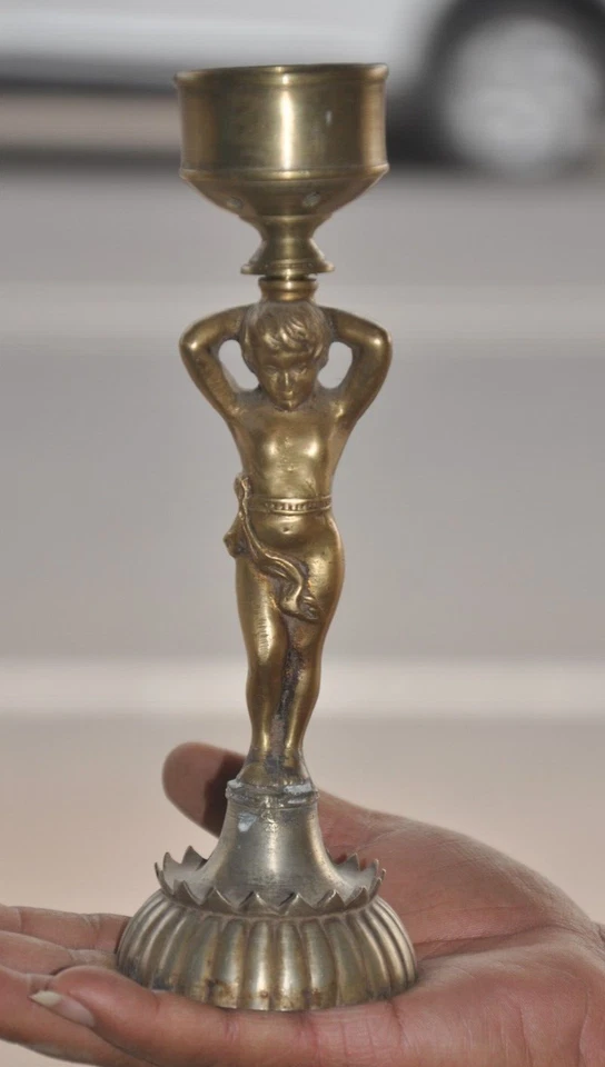 A graceful blend of art and function, this vintage brass woman candle holder is a beautifully sculpted piece that adds elegance and character to any space.