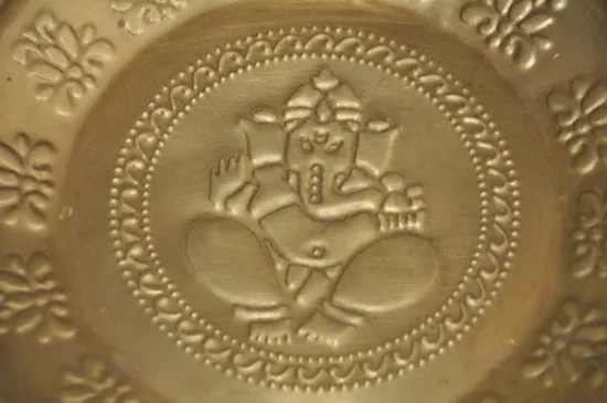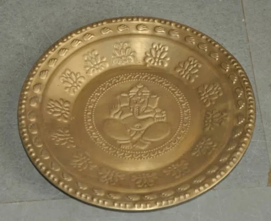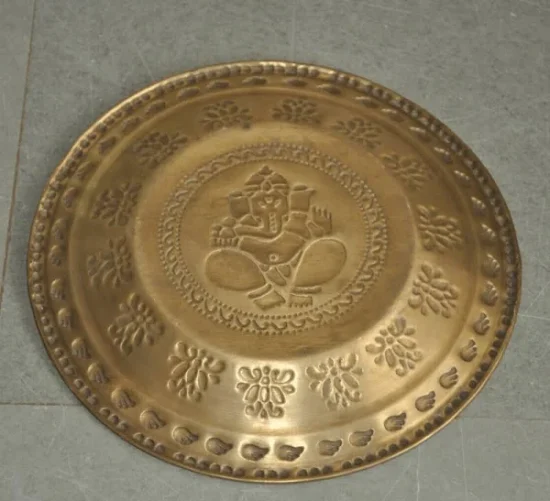 Immerse yourself in the rich heritage of this Vintage Brass Handcrafted Lord Ganesha Embossed/Engraved Work Decorative Plate, a piece that encapsulates timeless artistry and cultural significance. With a history spanning 60-70 years, this plate boasts a beautiful patina, adding to its allure and authenticity.
