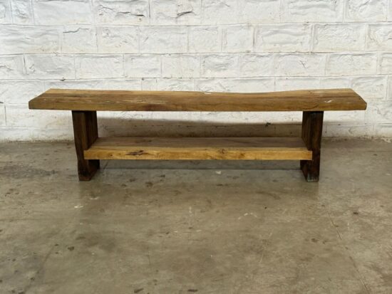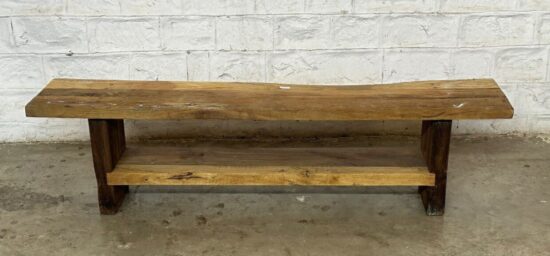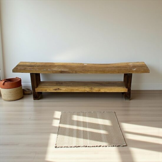 This bench features a sturdy design with a practical lower shelf, perfect for shoes, books, or decorative items. Its minimalist, rustic look makes it ideal for use as an entryway bench, coffee table, hallway seat, or farmhouse accent piece.