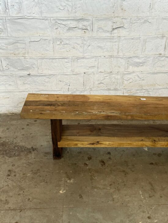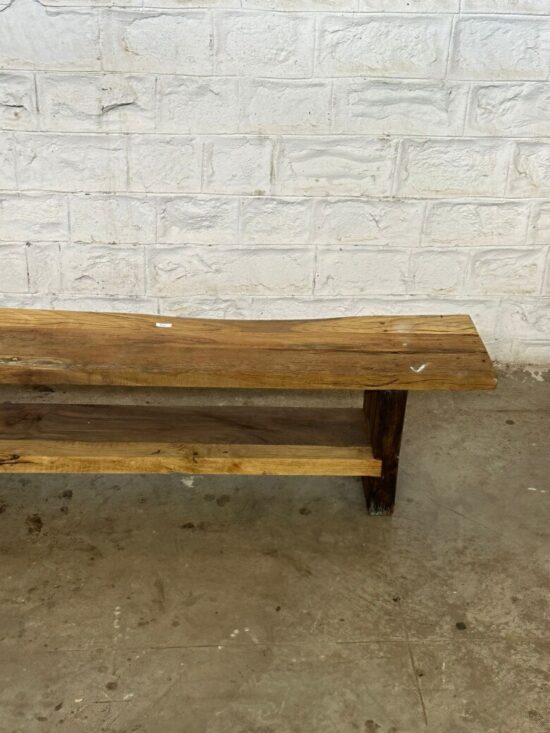 Add timeless rustic charm to your home with this Vintage Indian Wooden Bench, handcrafted from solid aged wood. Its natural grain, earthy tones, and raw finish highlight the authenticity of Indian craftsmanship, making it a versatile piece for modern and traditional spaces alike.