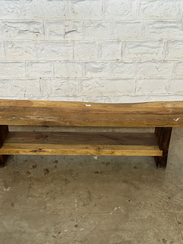 Add timeless rustic charm to your home with this Vintage Indian Wooden Bench, handcrafted from solid aged wood. Its natural grain, earthy tones, and raw finish highlight the authenticity of Indian craftsmanship, making it a versatile piece for modern and traditional spaces alike.