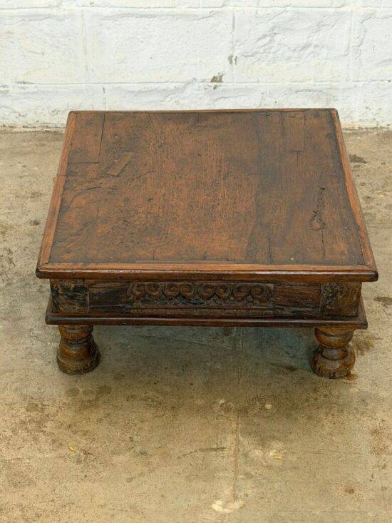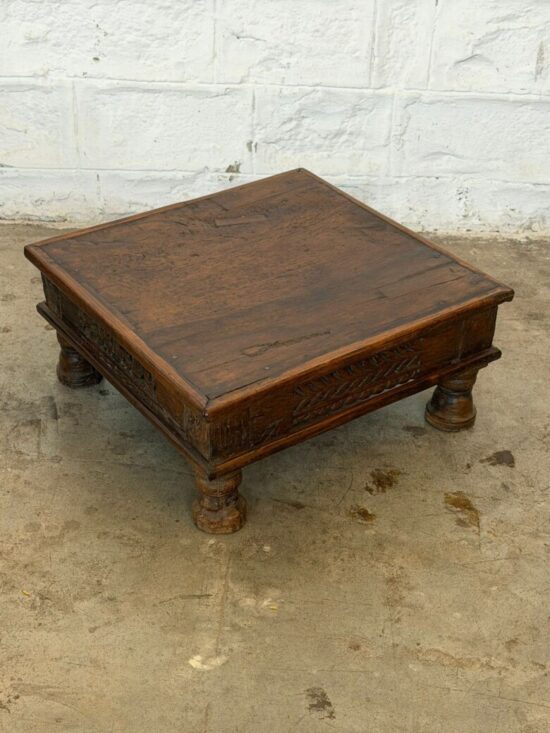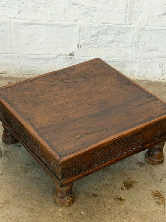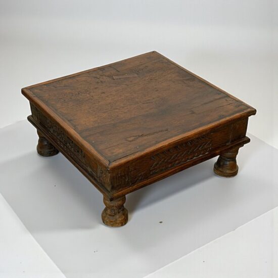 Step into a world of vintage allure and cultural richness with our exquisite antique Indian teak wood chowki, a captivating embodiment of timeless beauty. With a storied history spanning around 85 years, this chowki encapsulates the essence of a bygone era, making it an enchanting addition to any collector’s treasure trove.