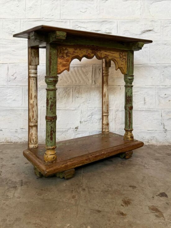 Originally used as a home shrine, this mandir now serves as a striking decorative piece for collectors, designers, and lovers of Indian heritage. Its rich carvings and structural presence make it an exceptional accent for entryways, living rooms, pooja rooms, galleries, boutique hotels, or curated vintage interiors.