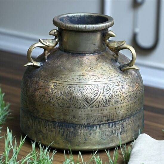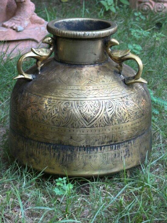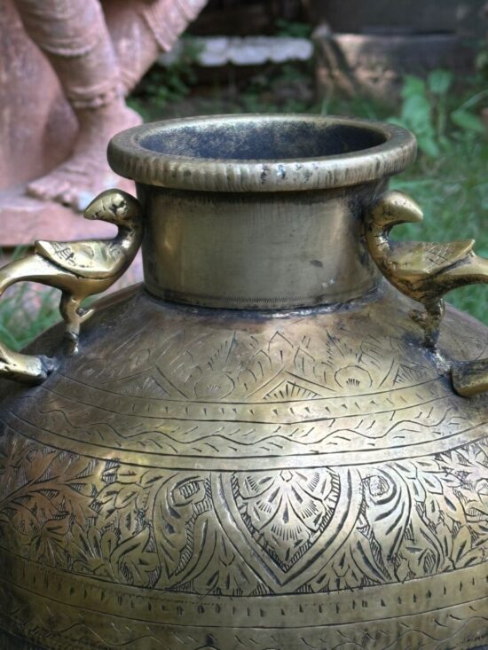 Bring home the elegance of traditional Indian craftsmanship with this Vintage Brass Pot Planter featuring exquisite peacock-shaped handles and detailed hand-engraved motifs. Originally used as a water pot, this piece has now become a versatile collectible that can be repurposed as a planter, centerpiece, or decorative accent.