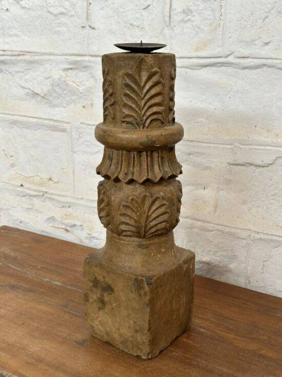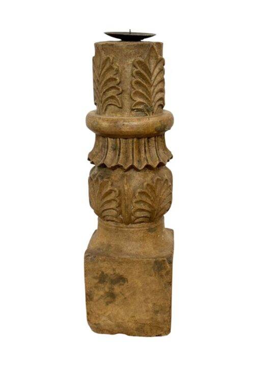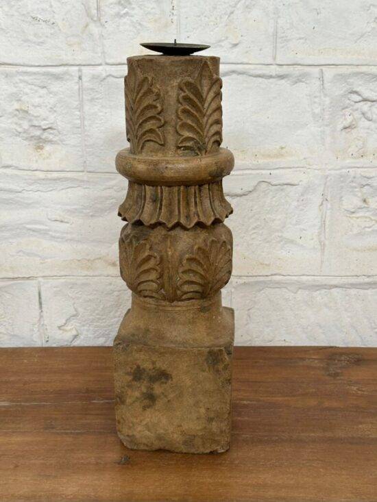 Introduce timeless charm and architectural elegance to your space with this hand-carved vintage stone candle stand, dating back to the 1940s. Crafted from solid stone, this candle holder was originally a part of an architectural pillar, now repurposed into a statement decor accent.