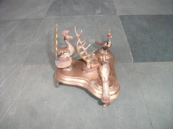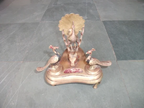 Dating approximately 50–60 years old, this piece reflects traditional Indian metal craftsmanship and makes a striking statement on any writing desk or study table.