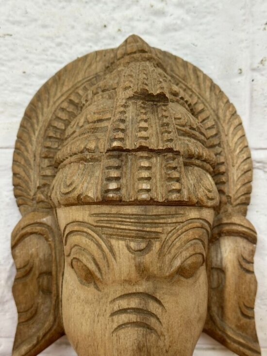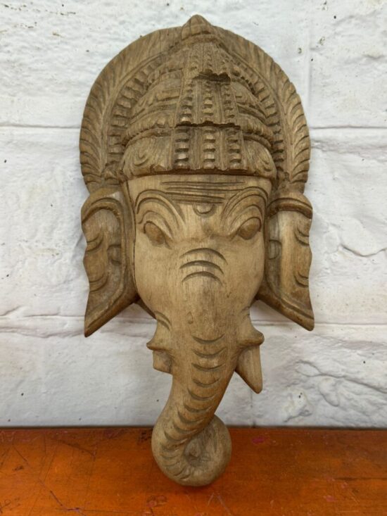 Bring home peace, wisdom, and blessings with this exquisite hand-carved wooden Ganesha wall hanging, crafted in solid teak wood. Measuring 6.5 x 5 x 12 inches, this intricately detailed sculpture features Lord Ganesha with a serene expression, carved in traditional Indian style.