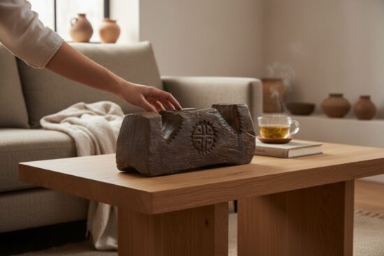 Use: Decorative artifact, shelf accent, collectible wooden sculpture