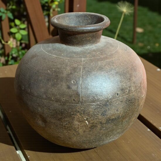 Originally used in traditional Indian households for storing water or grains, this piece now makes a stunning decor accent — ideal for vintage-themed interiors, farmhouse-style decor, or as a unique artifact in a collector’s display.