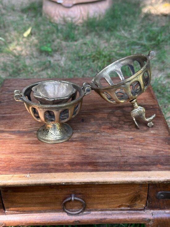 Bring home a touch of heritage with this Vintage Indian Brass Dhoop Stand, a rare and authentic 90-year-old piece of Indian craftsmanship. Traditionally used in temples and homes, this dhoop stand holds incense or agarbatti, spreading soothing aromas during prayers, meditation, and festivals.