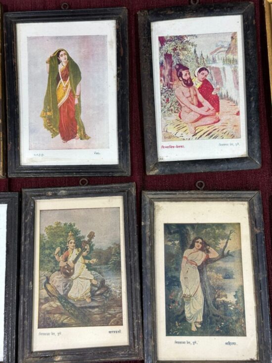 These are vintage Ravi Varma Press or associated press oleographs (likely early-mid 20th century).