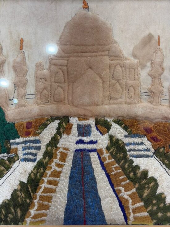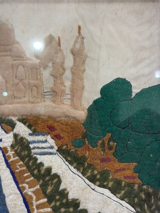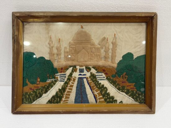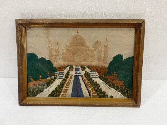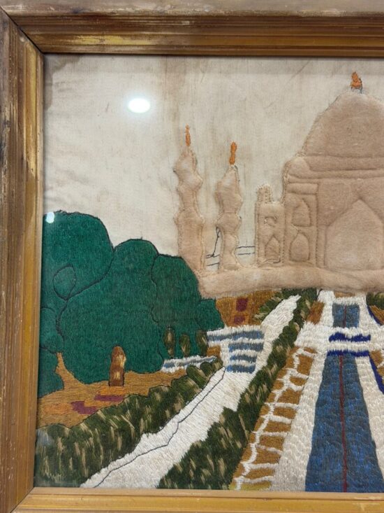 Vintage Hand Embroidered Taj Mahal Artwork – Textile Wall Hanging – Framed
