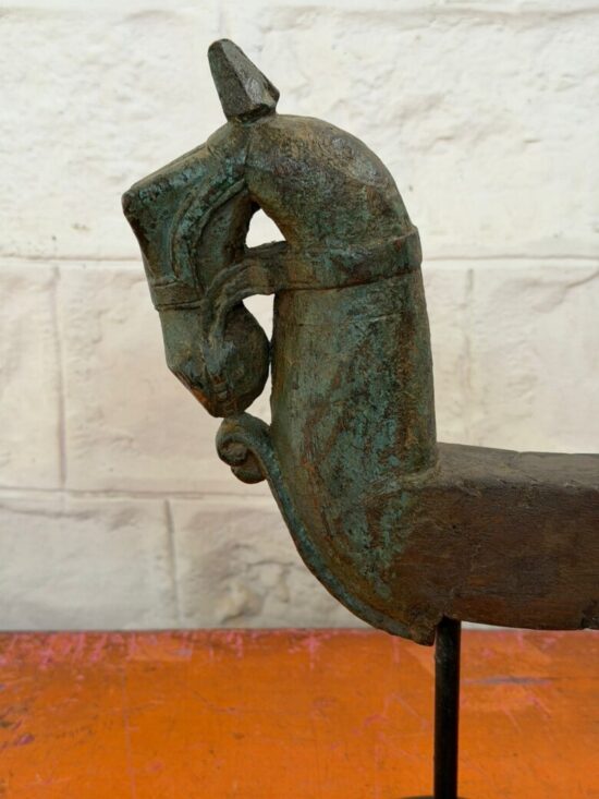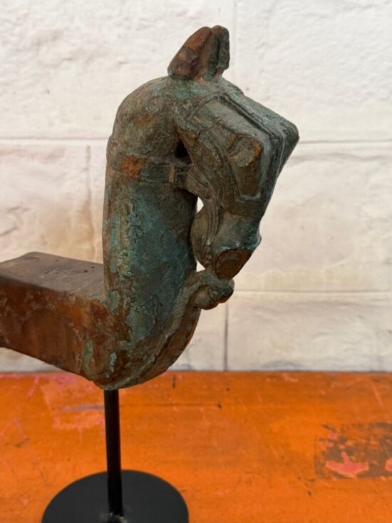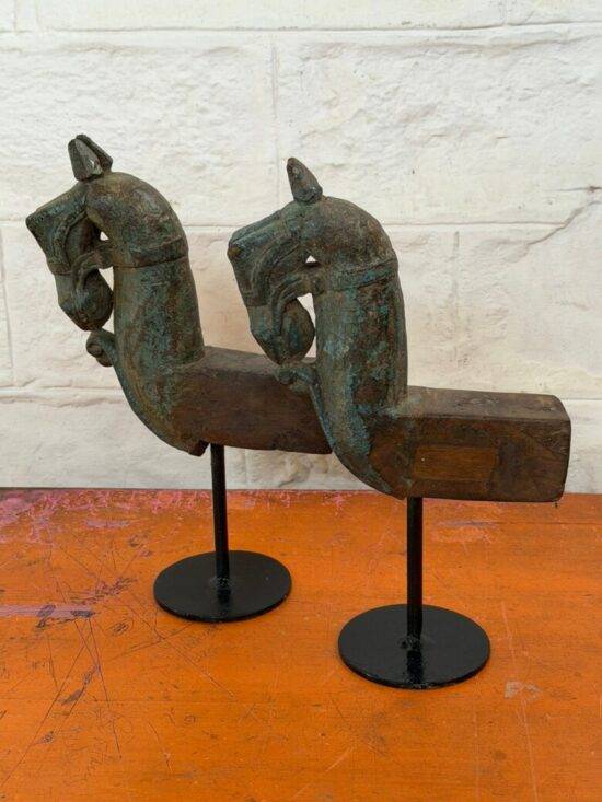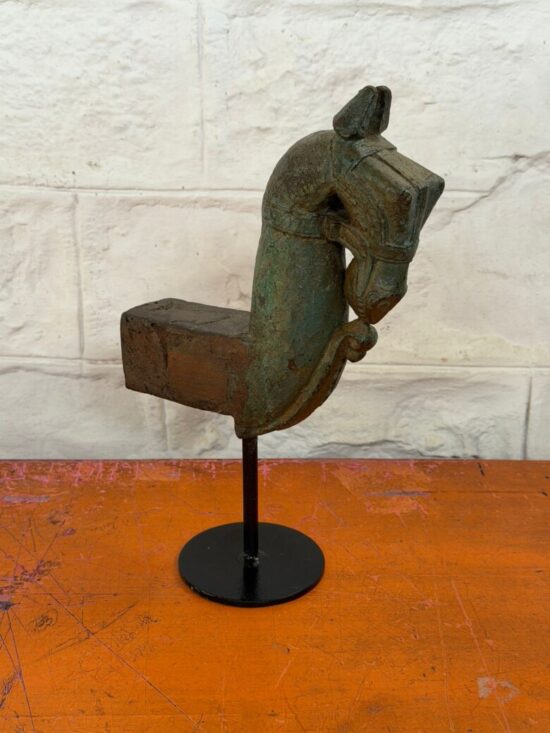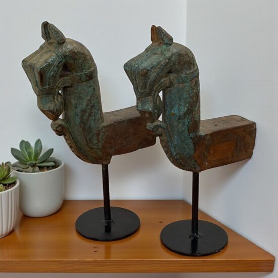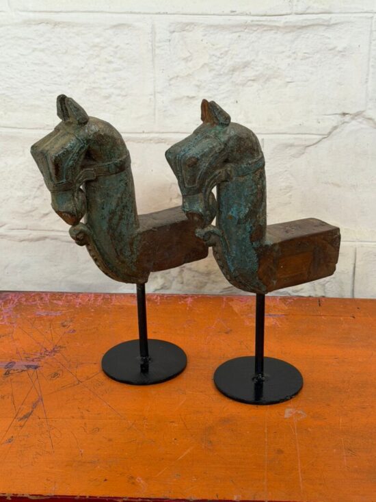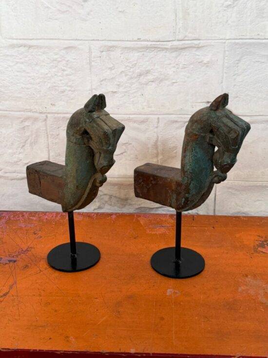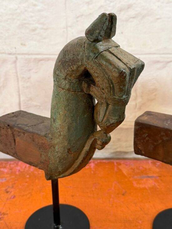 Bring heritage charm and rustic elegance to your space with this Vintage Teak Horse Head Sculpture Set of 2, beautifully carved and featuring a naturally aged blue-green patina. These pieces originate from traditional Indian craftsmanship and were once part of old architectural elements—now transformed into striking standalone art sculptures.