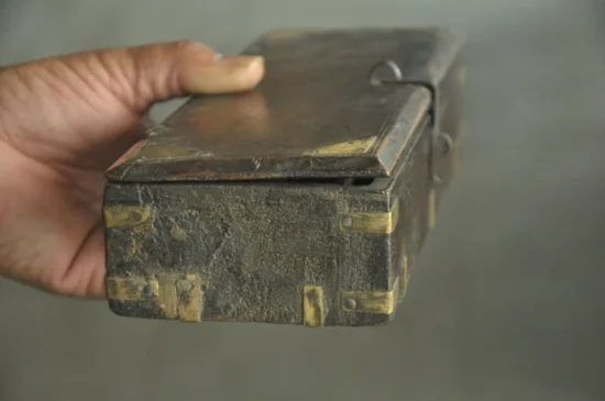 Its compact design and historic charm make it perfect for display in curio cabinets, home libraries, or study spaces, adding an authentic touch of old-world craftsmanship to any setting.