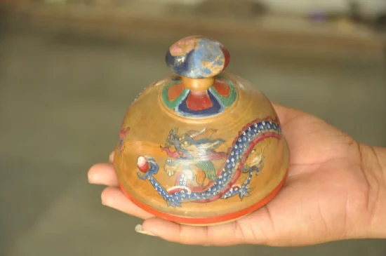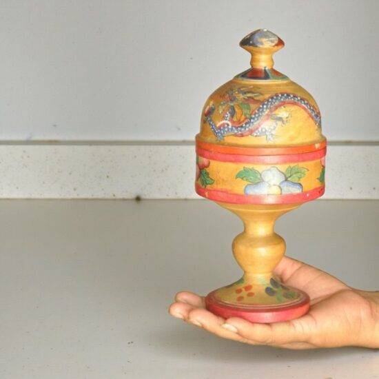 Vintage Wooden Lacquer Hand painted Kumkum Powder Box – 60 to 70 Years Old – Dragon Motif – Unique Pedestal Shape