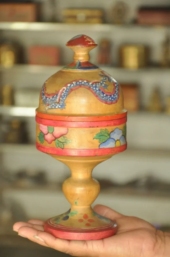 Traditional Indian wooden lacquer craftsmanship