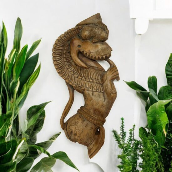 Yalis are symbolic of power and protection, often seen guarding temple entrances. This antique piece brings that same spiritual energy and artistry to your home, making it ideal for use as a wall hanging, gallery accent, or architectural decor element.